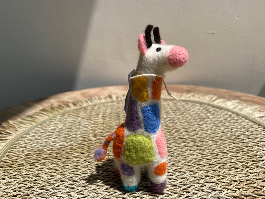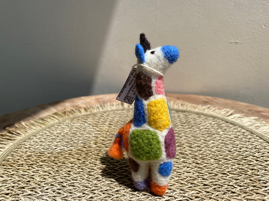 きりんの羊毛フェルトのぬいぐるみ (S)耳がパープル!